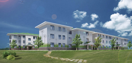 设计概念以“水”为中心,心宁致远 ,崇尚自然之力;感于行,悟于心, 万物归宗。把这种概念融入设计之中,做出具有柔和治愈美感的室内设计。在疗养医院中,有一座四合院的建筑,四合:合天,露天庭院,与天相接,时时享受到与大自然亲密接触的快乐;合地,单层建筑,与地气相接,有益于人、动植物的健康生长;合人,院内人气旺盛,邻里之间和睦相处,生活其乐融融;合己,顺其自然的生活态度,对事、对物的平稳心态。